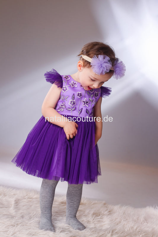 Festliches Mädchenkleid mit floraler Spitze, Lila, Gr. 74/80 (vorgefertigt)