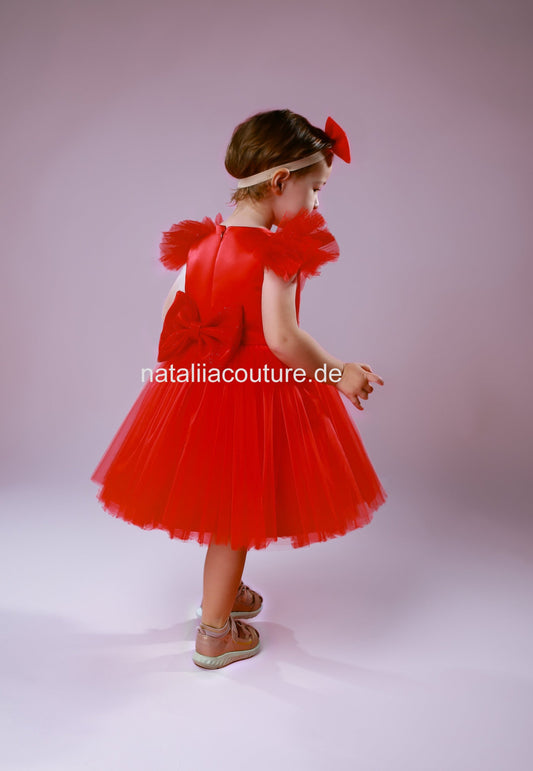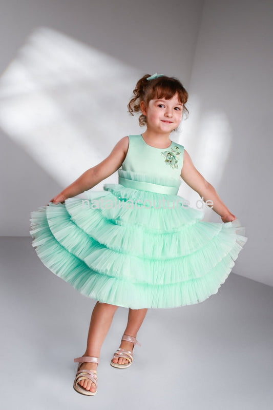 Elegantes Tüllkleid für Mädchen – Satinkleid mit Glitzer-Tüll & Flügelärmeln (vorgefertigt)