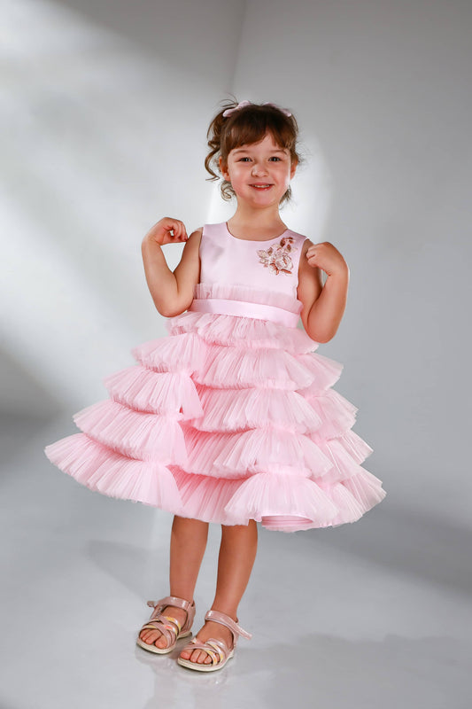 Blumenmädchenkleid mit Glitzer-Tüll – nach Maß in Wunschfarbe (Gr. 68–122)